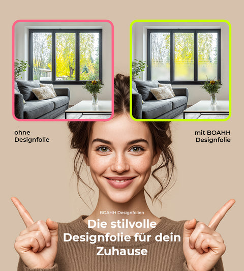 Unsere Designfolien erfüllen nicht nur die praktische Funktion eines Sichtschutzes, sondern verleihen deinem Raum auch eine ansprechende Ästhetik. Die Designs tragen dazu bei, den Raum zu verschönern und ihm eine ganz eigene Persönlichkeit zu verleihen. Von dezenten Akzenten bis hin zu markanten Mustern bieten unsere Folien eine Vielfalt an Gestaltungsmöglichkeiten, die sich nahtlos in jede Einrichtung integrieren lassen. Verwandle deinen Raum in eine Oase der Schönheit mit unseren